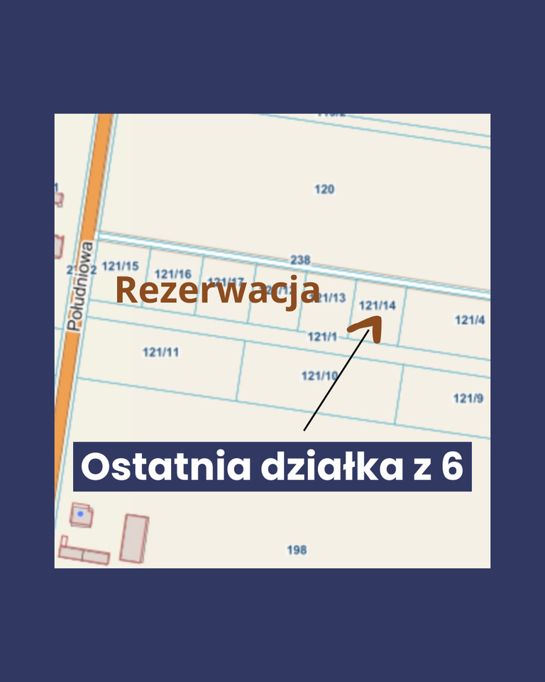 Pozostałe działki w tej lokalizacji zostały już sprzedane lub są w rezerwacji. To jedyna wolna działka gdzie będzie powstawało kameralne osiedle domów jednorodzinnych.