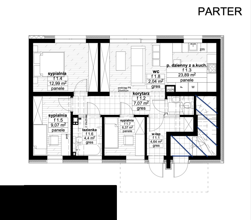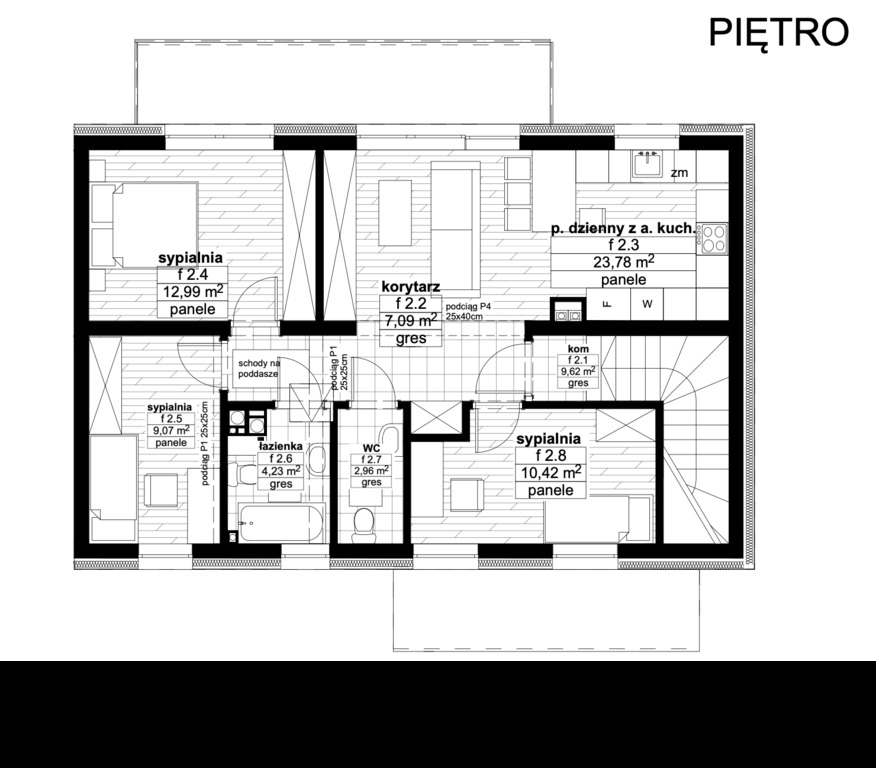 • strych do adaptacji – dodatkowa przestrzeń do własnej aranżacji